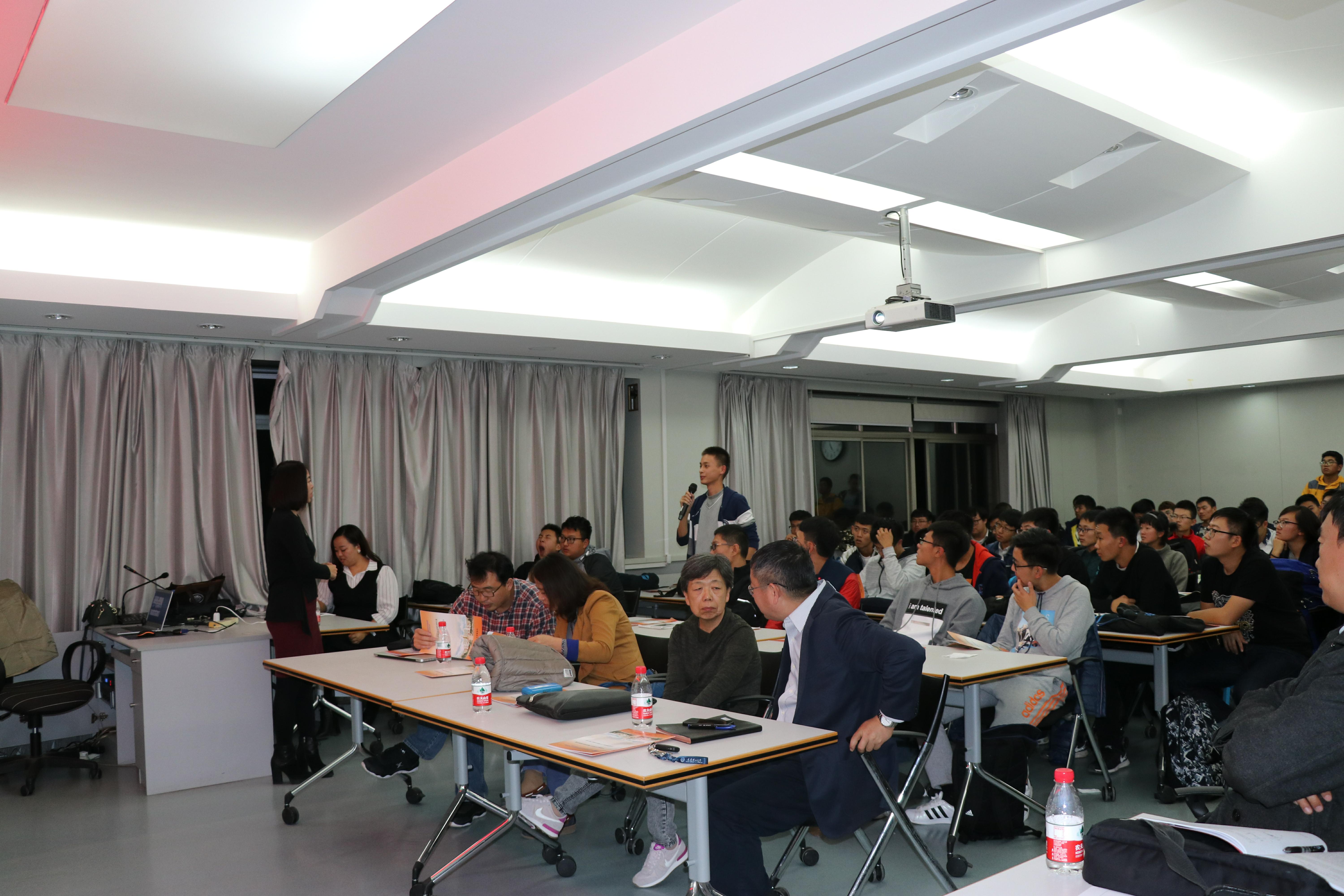 在会议的第二阶段,与会的全体老师针对同学们目前存在各种问题和困惑进行了面对面的交流和探讨。“我们的国际合作交流项目都有哪些?”、“我们的俄语课程最终要达到什么样的要求?”、“我们的保送研究生比例和要求和普通专业有什么不同?”……同学们纷纷提出了心中的疑惑,老师们也都给予了耐心细致的分析和解答。